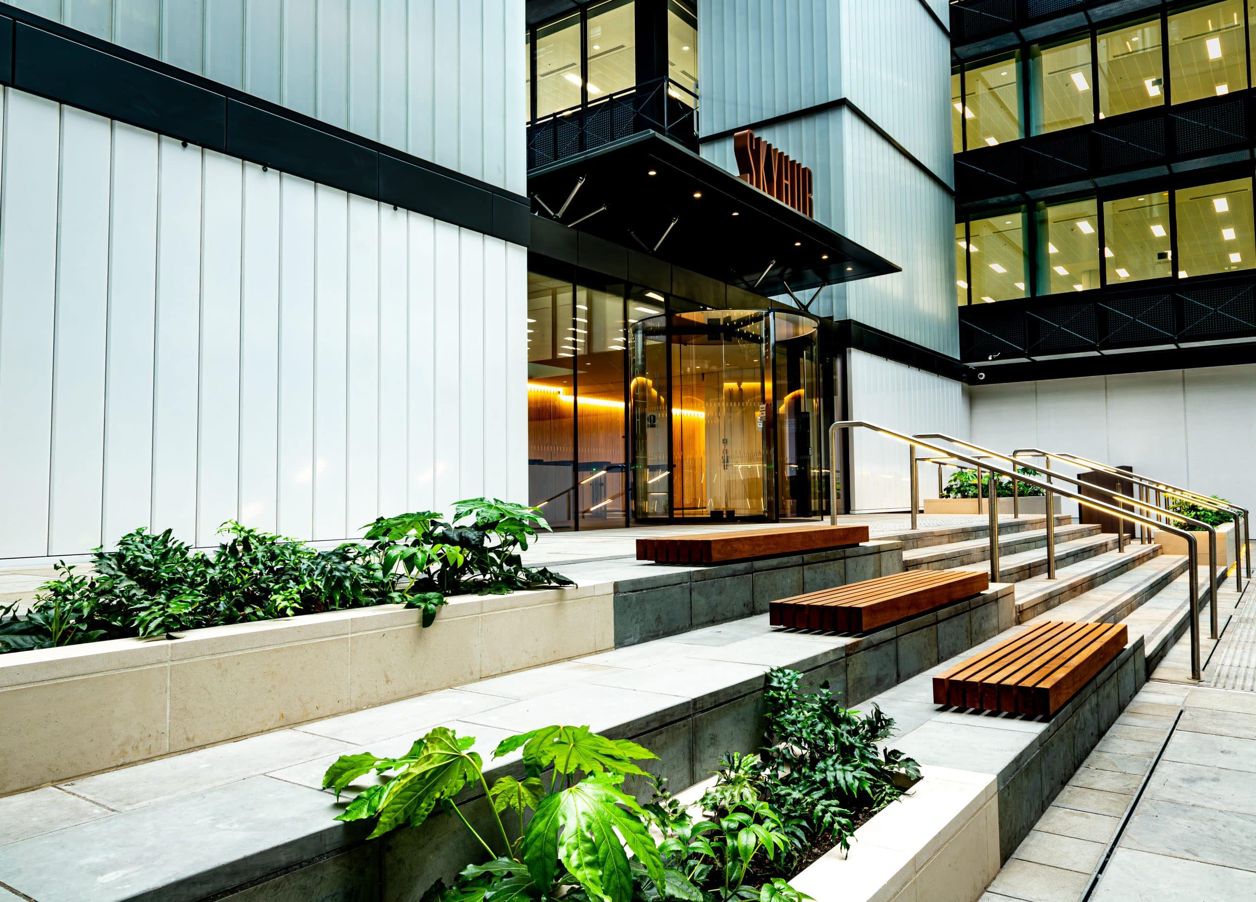 Hub Victoria (123-151 Buckingham Palace Road) is a 107,000 sq. ft. self-contained, mixed-use residential, office & retail development, a two-minute walk from London Victoria Station. The public walkway along Buckingham Palace Road has been transformed. Renewed hard and soft landscaping and enlarged retail units create vibrancy and street-level activity.